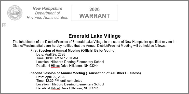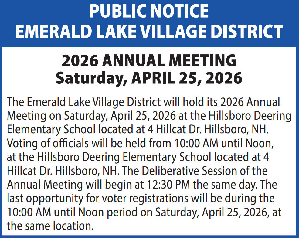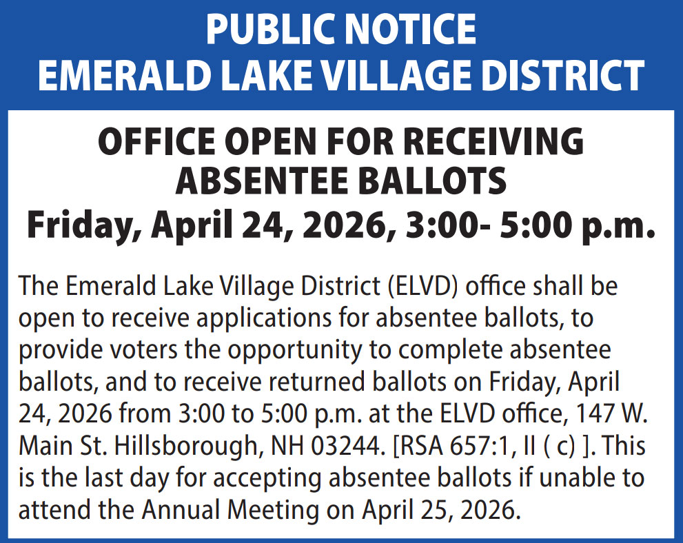 Emerald Lake Village District (“ELVD”) within the Town of Hillsborough was established in 1979 for the community surrounding Emerald Lake, also known as Gould Pond. Originally a subdivision of seasonal homes, it has developed into primary homes for the majority of its residents. ELVD through a Board of Commissioners manages the well based water system, the beaches and recreational areas, and approximately fourteen miles of roads.