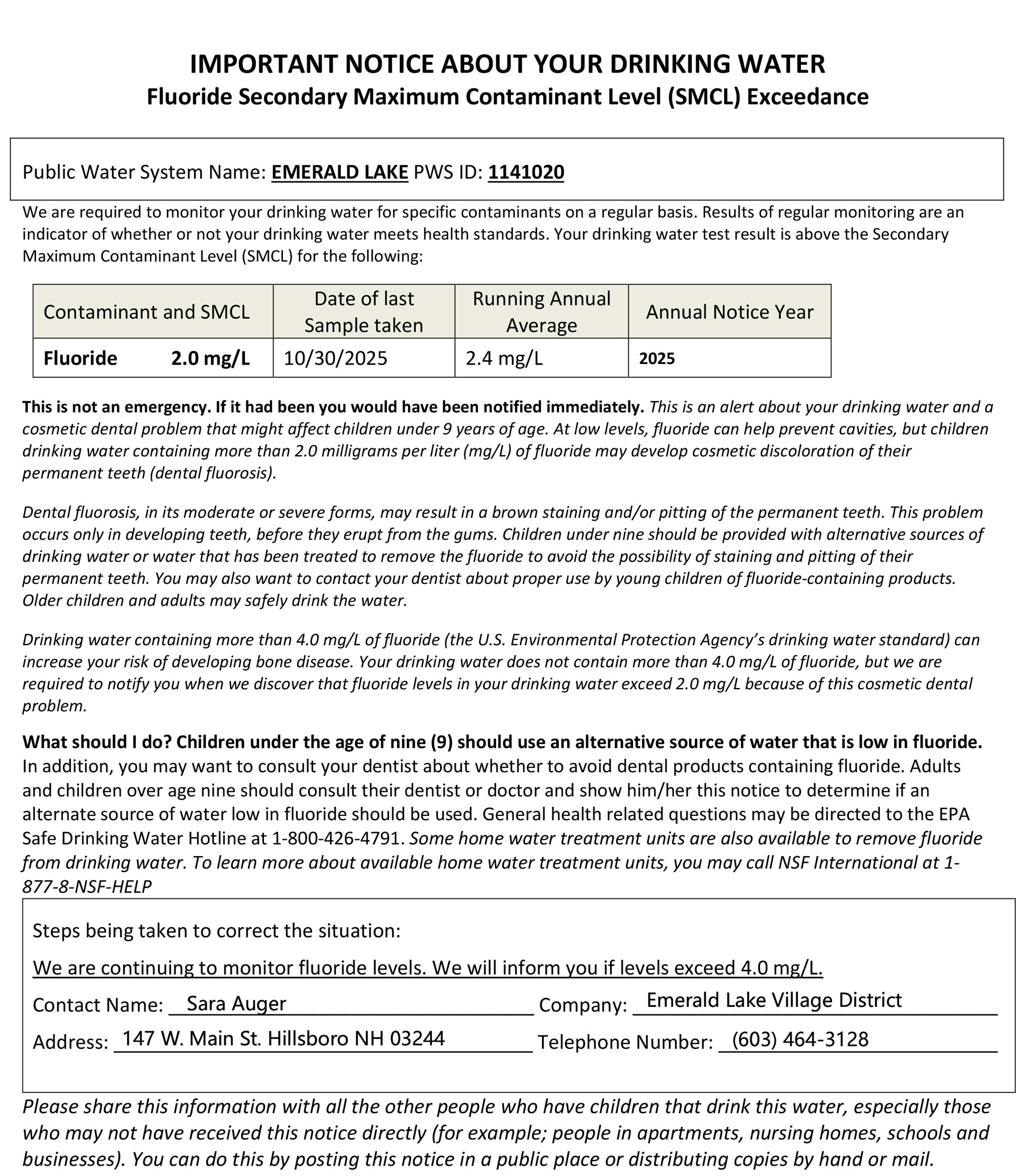 Please leave a message at the ELVD office (603-464-3128) so we may record the information.